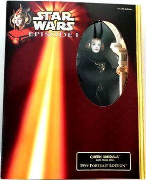 *A generation before Star Wars: A New Hope… In a galaxy far, far away, an evil force is gaining strength and threatens an entire civilization. Two courageous Jedi, a young queen, a Gungan outcast, and a slave boy named Anakin, band together to save a planet under attack as the fate of the galaxy hangs in the balance. Hasbro continues the Star Wars adventure with this line of action figures for Star Wars Episode 1: The Phantom Menace. An invasion of her home planet Naboo forces the Queen to travel to Coruscant and appeal to the Senate for help. Queen Amidala is approximately 12 inches in height and is featured in her elegant Black Travel Gown.